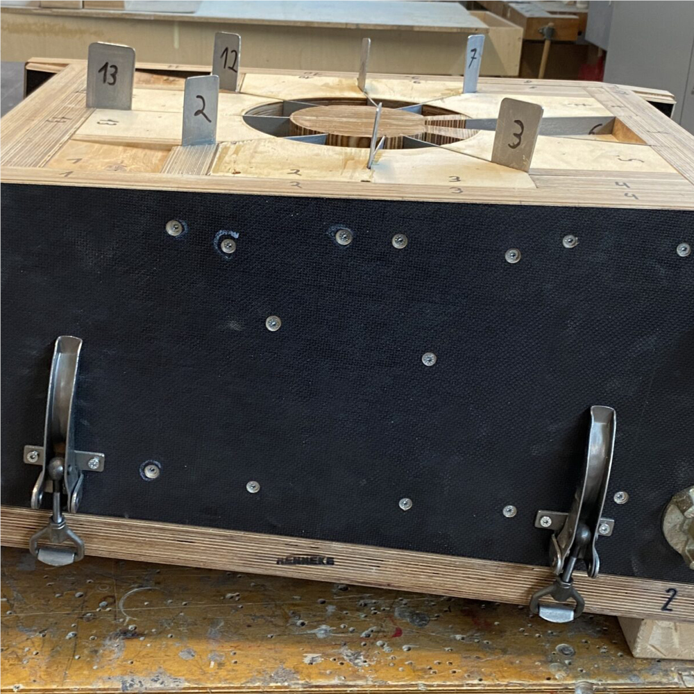 Meistens wird ein Stutzenkranz nicht als Einzelfertigteil oder in zwei ganzen Hälften gefertigt, sondern aus mehreren Einzelbauteilen zusammengesetzt. Damit diese präzise zueinander passen, wird das gesamte Gebilde oftmals in einer einzigen Form gegossen.
