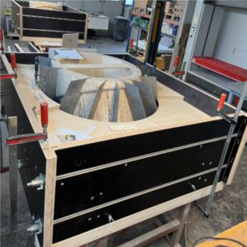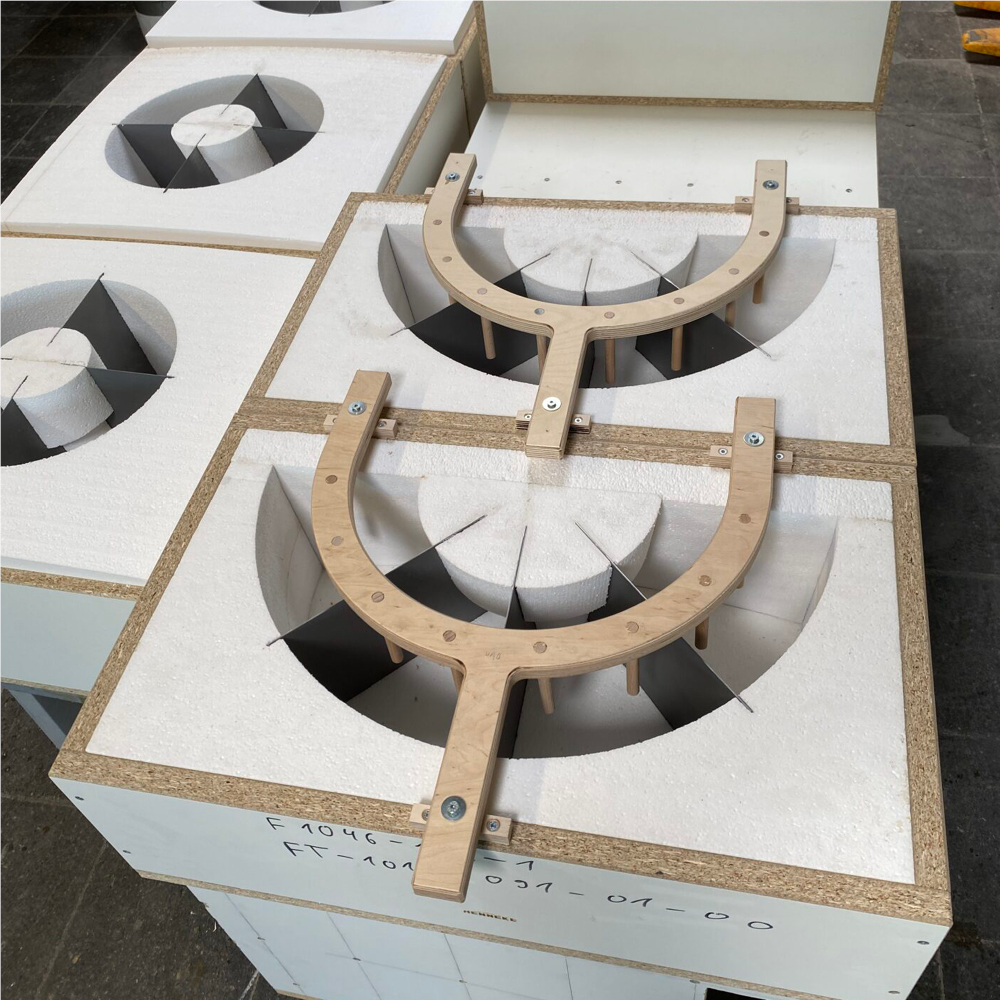 Ein weiterer Grund dafür ist, dass Stutzenkränze meistens individuell geplante Konstrukte sind, welche genau auf das aktuelle Projekt zugeschnitten sind und anschließend für kein weiteres Projekt werden können. Dementsprechend ist eine Gesamtform wesentlich wirtschaftlicher als einzelne Formen pro Segment. Auch wenn das Handling und Entschalen dadurch komplizierter wird.