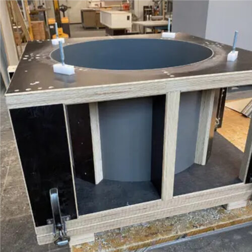Da klassische Holzformen bei wiederholtem Kontakt mit Wasser und Betonmischung zum Quellen oder Verziehen neigen, haben wir die formgebenden Bereiche gezielt anders aufgebaut: