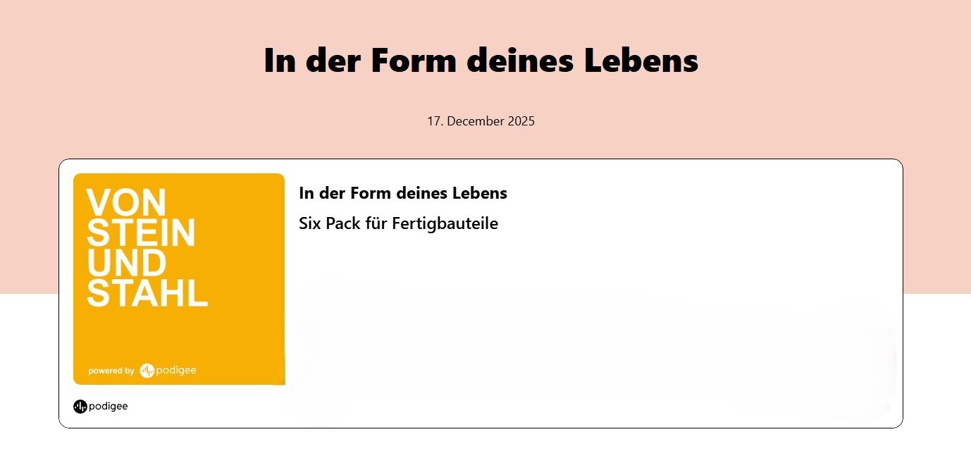 🎙️ Hören Sie jetzt den Podcast „In der Form deines Lebens – von Stein und Stahl“ und entdecken Sie, wie Handwerk heute und morgen aussieht.
